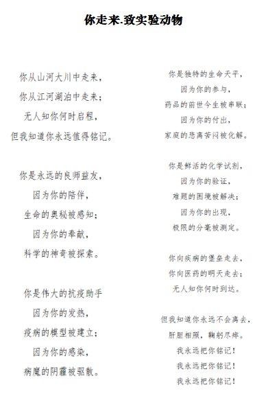 为了铭记实验动物为人类健康事业所做出的巨大贡献和牺牲,增强广老员工尊敬畏生命、尊重生命、善待生命、拯救生命的意识,在第45个“世界实验动物纪念日”到来之际,由suncitygroup太阳集团联合校团委主办,机能学实验实训中心承办的第三届“我与实验动物的故事” 原创诗歌、漫画作品征集活动圆满完成了作品征集和评选工作。
