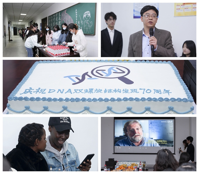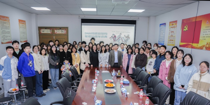 1953年4月25日,DNA双螺旋结构的发现被认为是现代生物学和医学发展史上的一座里程碑,今年是其发现70周年。为推动生物化学与分子生物学课程教学改革,加强科学史教育,促进人文素质教育与学科教育的融合,4月25日晚,生物化学与分子生物学教研室在1号实验楼1421室举行DNA双螺旋结构发现70周年庆祝活动。活动由教研室汪茗老师发起,教研室部分教师,热爱生物化学学习的本科生、研究生和职工约70人参加了活动。