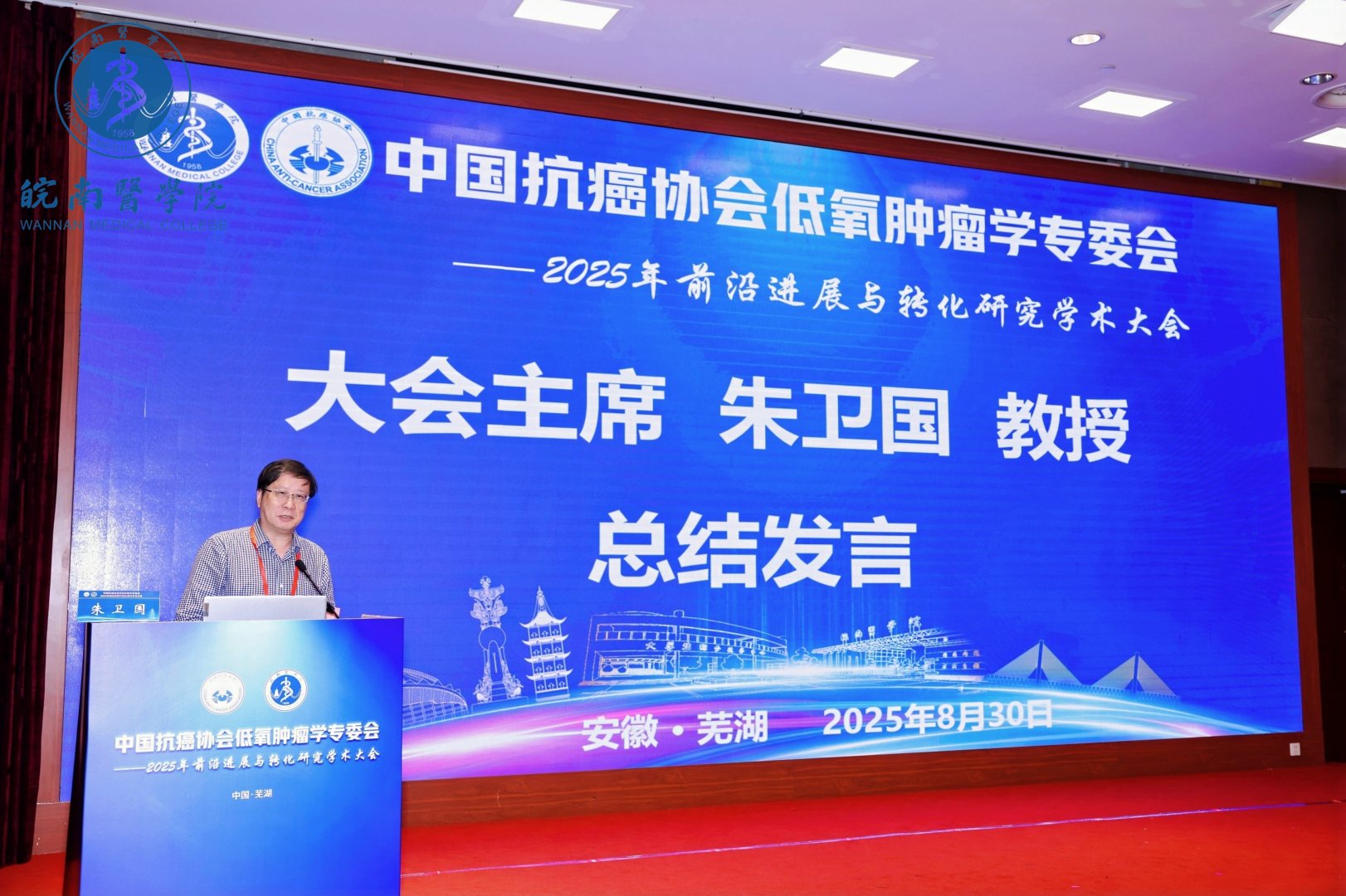 朱卫国教授作会议总结。他对会议的成功举办表示充分肯定,对与会专家、青年学者及会务团队的积极参与和辛勤付出表示衷心感谢。他指出,本次大会系统展示了低氧肿瘤学在分子机制、微环境调控、免疫治疗、临床转化等多方面的重要进展,有效促进了跨单位、多学科之间的深度交流。未来,中国抗癌协会将继续发挥平台与纽带作用,持续深化基础与临床融合,助力我国低氧肿瘤事业实现跨越式发展,造福患者、贡献健康中国。