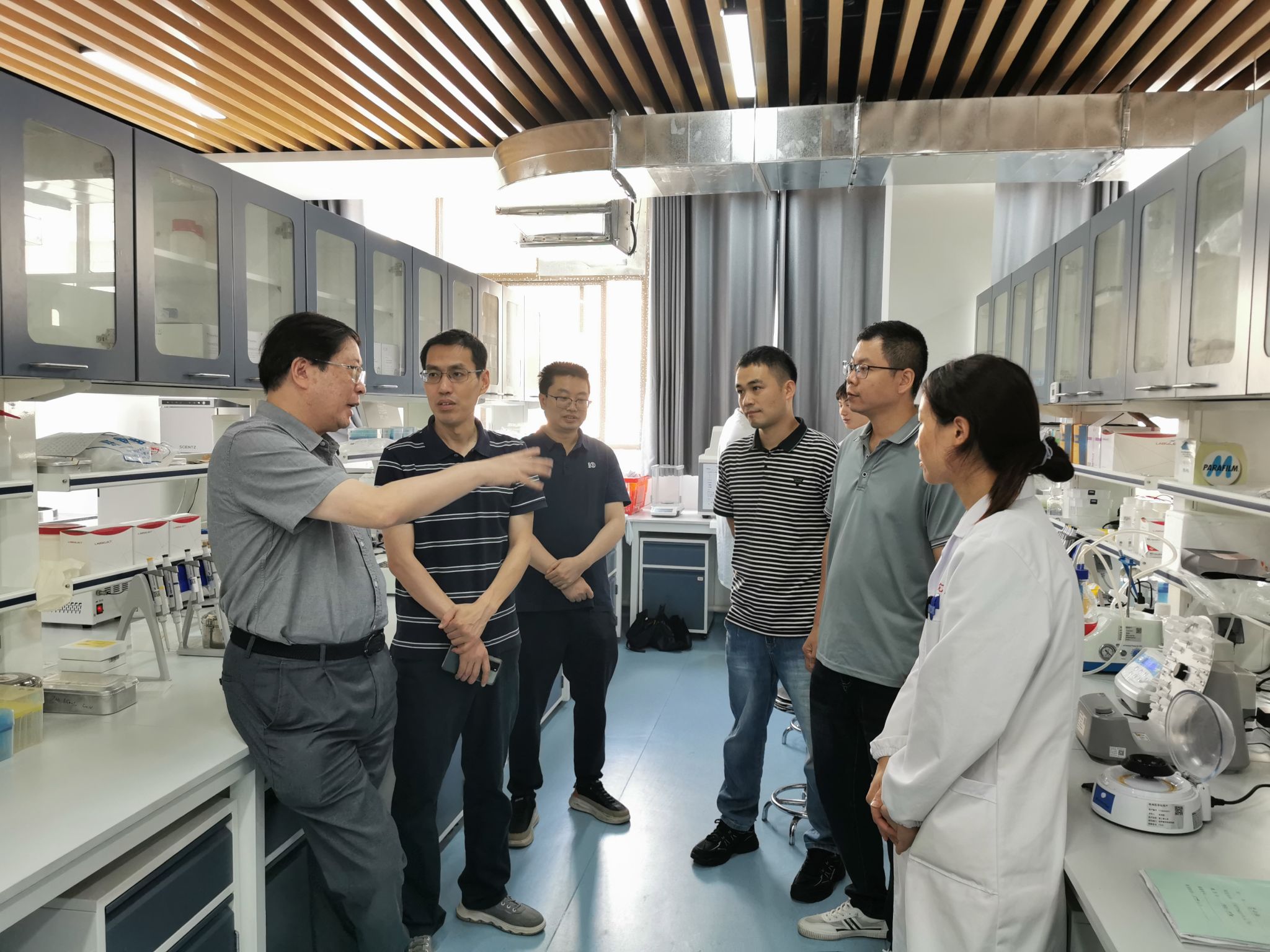 朱卫国教授一行深入实验室,与一线青年教师进行面对面交流,认真听取了团队成员的工作情况汇报以及在教学科研中遇到的困惑与难题,并给出了针对性的指导意见,鼓励他们要勇于创新,敢于突破,不断提升自己的教学水平和科研能力,争取产出更高水平科研成果。朱卫国教授一行还参与博士后面试,为分子医学表观调控实验室储备骨干人才。