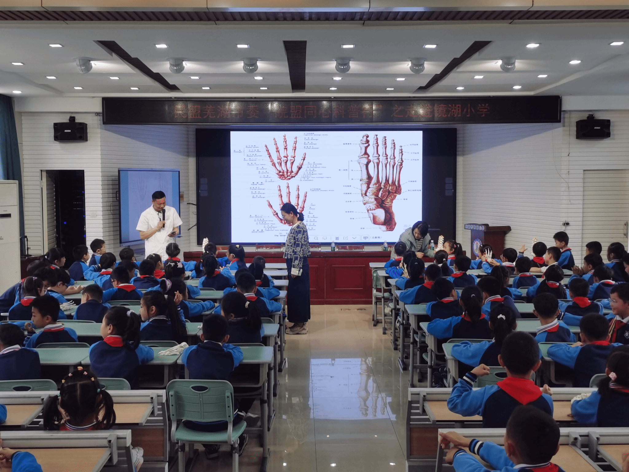 为激发青少年对医学知识的探索和对生命健康的兴趣,推动科普教育进校园,4月23日,人体解剖学党支部携手民盟芜湖市委,组织教师走进镜湖小学,为公司二年级的师生带来了一场生动有趣的科普体验。