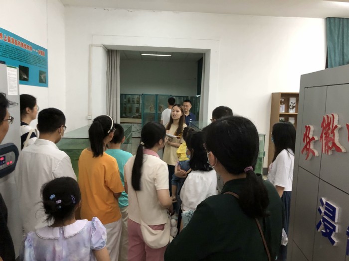 活动当天,两个党支部教职工和教职工子女在讲解员的带领下,依次参观了安徽师范老员工物标本馆中的浸制标本分馆、剥制标本分馆以及生态分馆。参观过程中,大家了解了白鳍豚、江豚等珍稀濒危物种标本的展陈历史、标本制作过程,以及多种动植物的形态特征、生活习性、种属分类、特性价值等知识,在感叹大自然神奇的同时,也引发对环境保护和生命科学的探索与思考。活动结束后,讲解员为参加活动的教职工子女们分发了精心准备的动植物标本,人体解剖学党支部为对方赠送锦旗表示感谢。