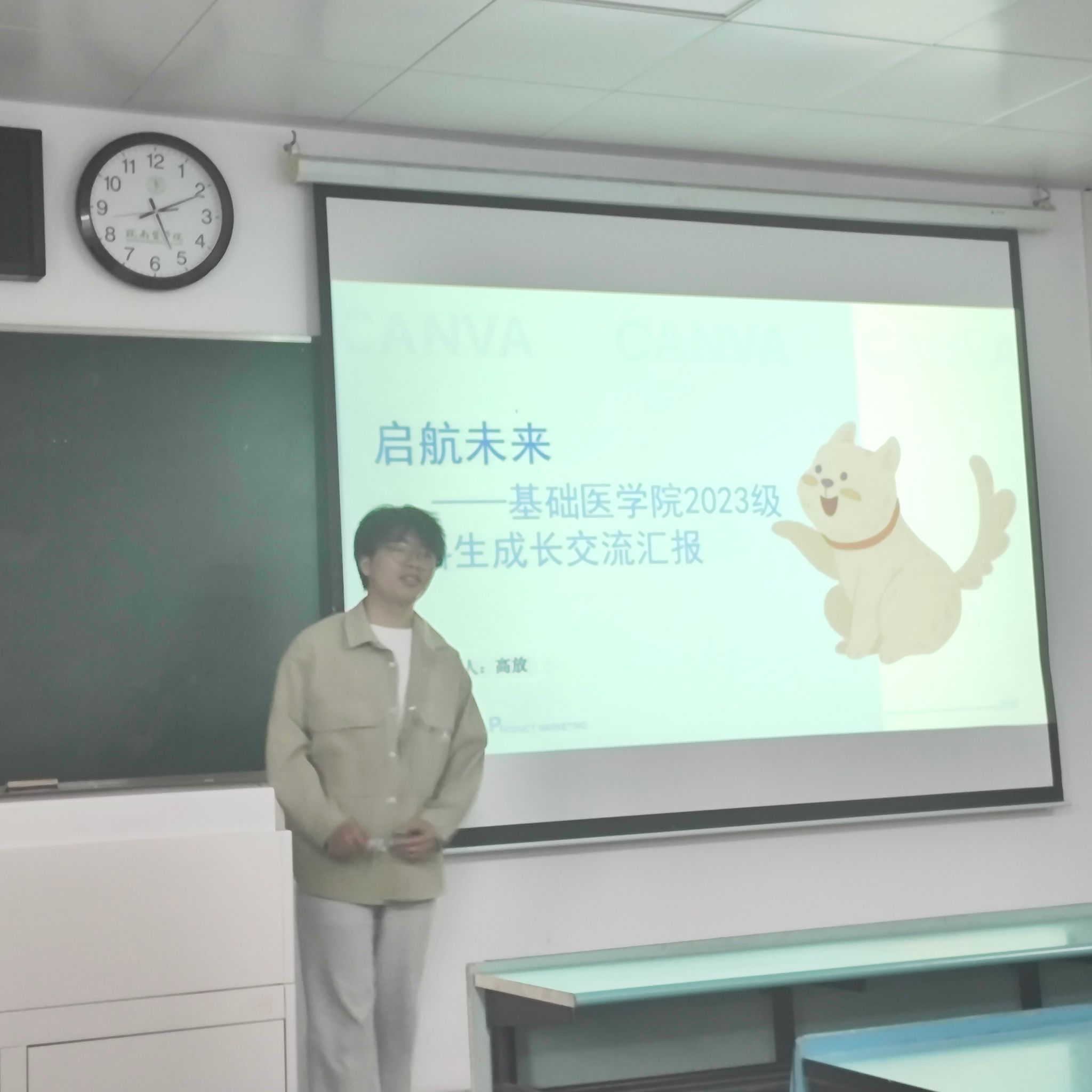 2023级基础医学专业的同学们通过PPT汇报的形式,从如何高效管理时间和精力,到如何在实验室中开展科研工作;从如何平衡学习与课外活动,到如何设定和实现个人目标,分享他们一年来在专业学习、科研锻炼、社会实践等多个方面的成长经历和独特体验,用自己的亲身经历来展示大学不仅是知识的殿堂,更是锤炼品格、提升能力的重要阶段;懂得了大学的学习生活不应仅仅停留在课本之上,更要放眼于广阔的社会实践,将所学应用于实际,不断提升自己的综合素质。