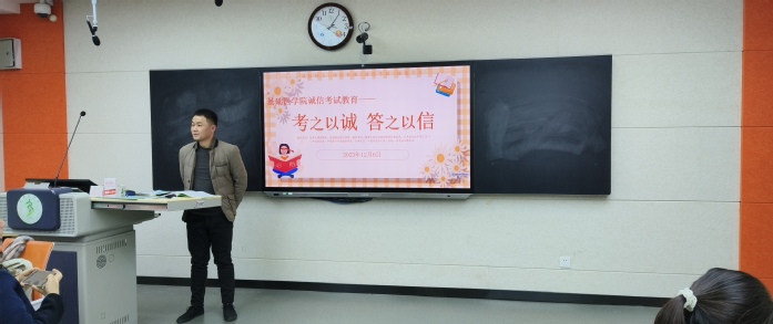 为提高员工诚信考试意识,做好英语四级和期末考试动员,12月6日晚,suncitygroup太阳集团在一号教学楼1206教室举行“考之以诚 答之以信”诚信考试主题班会,班会由员工辅导员卞显洋主持。