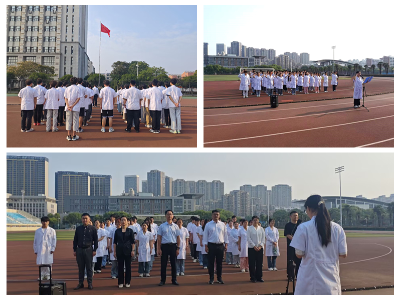 5月26日上午,公司“国旗下的思政课”主题教育活动暨升国旗仪式在滨江校区(北区)田径场庄严举行。公司党委副书记、纪委书记沈磊,党委委员、副经理王林,教师代表和全体本科生齐聚国旗下,以“旗扬五月,德润医途”为主题,在飘扬的五星红旗下感悟爱国情怀,在铿锵的医员工誓言中坚定从医初心。