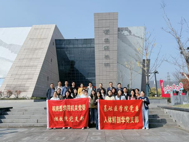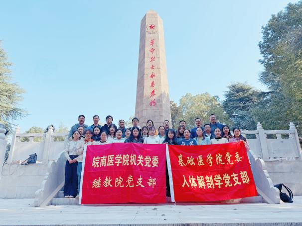 为深入学习贯彻党的二十届四中全会精神,深刻领会全会精神内涵,推动党建工作与红色教育深度融合,人体解剖学党支部联合校机关党委继教公司党支部于11月16日赴繁昌区烈士陵园和繁昌博物馆开展“学全会精神·聚共建合力”主题党日共建活动。