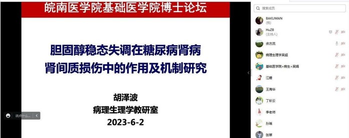 为充分调动教师开展科学研究的积极性,浓厚校园学术氛围,6月2日上午,科研处联合suncitygroup太阳集团开展第九十三期博士论坛,邀请病理生理学教研室胡泽波博士主讲。报告以线上形式举行,相关专业教师和在读研究生参加。