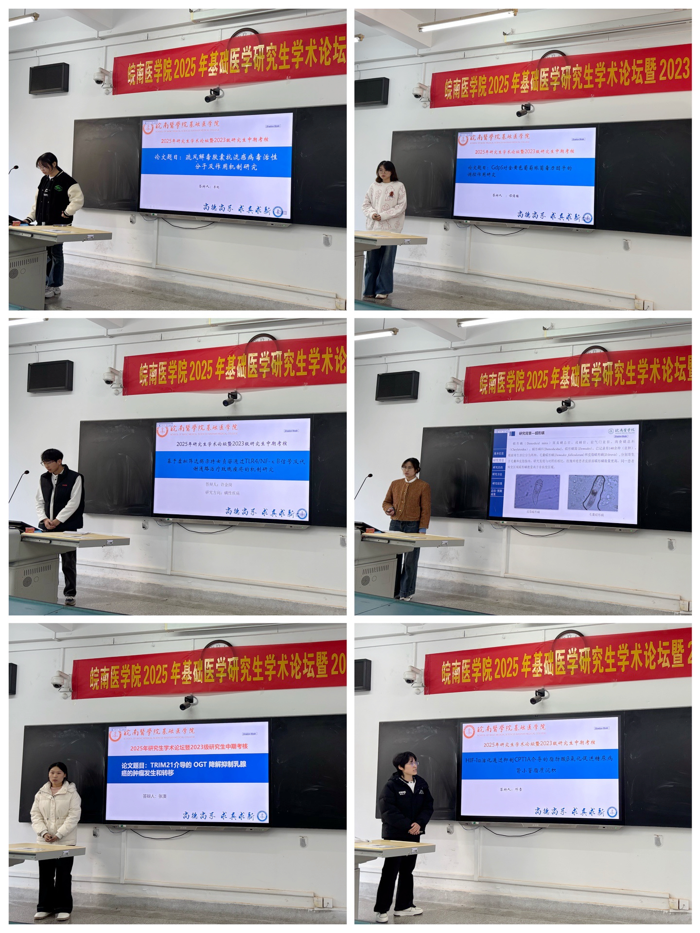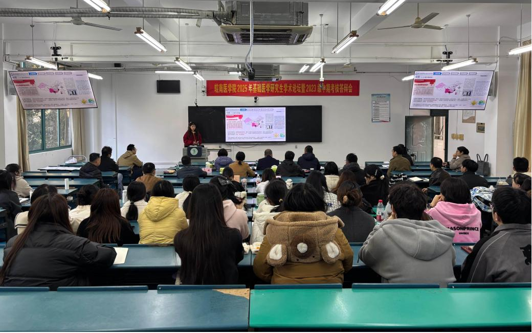 11月22日,公司在一号教学楼1102教室举办基础医学研究生学术论坛暨2023级研究生中期考核答辩会。本次答辩以学术交流为核心、中期考核为抓手,创新融合壁报展示与考核答辩环节,特邀校内六位专家组成评委组,为基础医学专业研究生搭建起展示研究成果、提升学术能力的优质平台。答辩期间,基础医学专业全体研究生全程参会聆听报告,研究生导师列席交流指导,形成了浓厚的学术互动氛围。